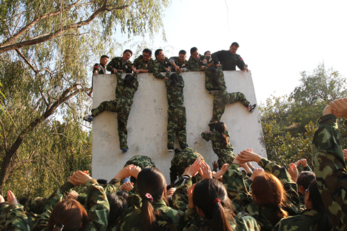 員工在教練的指導(dǎo)下,進(jìn)行高空抓杠、信任背摔、翻牌游戲、翻越畢業(yè)墻等項(xiàng)目活動(dòng)。其中高空抓杠——空中項(xiàng)目是一個(gè)自我挑戰(zhàn)的項(xiàng)目,目的是突破心理保護(hù)層,建立自信心,克服心理障礙,增強(qiáng)自發(fā)控制、自我決斷的能力。很多同仁克服 “恐高”、身體不適等因素,勇敢的挑戰(zhàn)自我、超越自我,其表現(xiàn)令人刮目相看。高空一小步,人生一大步,在生活、工作中,很多事情不是不能做,而是不敢做,不是能力問題,而是心理問題,不要自我設(shè)限。信任背摔¬——站在1點(diǎn)4米的臺(tái)子上,雙手被捆,雙腿繃直,直接倒下去,下面有團(tuán)隊(duì)人員做保護(hù),體現(xiàn)了自我的勇氣,責(zé)任,以及團(tuán)隊(duì)成員間的信任。最后翻越畢業(yè)墻,初看不可能完成的任務(wù),最后被大家完成了,集中體現(xiàn)團(tuán)隊(duì)協(xié)作的重要性,特別是對(duì)做“基座”成員的敬意,讓大家記住要永保一顆感恩之心。